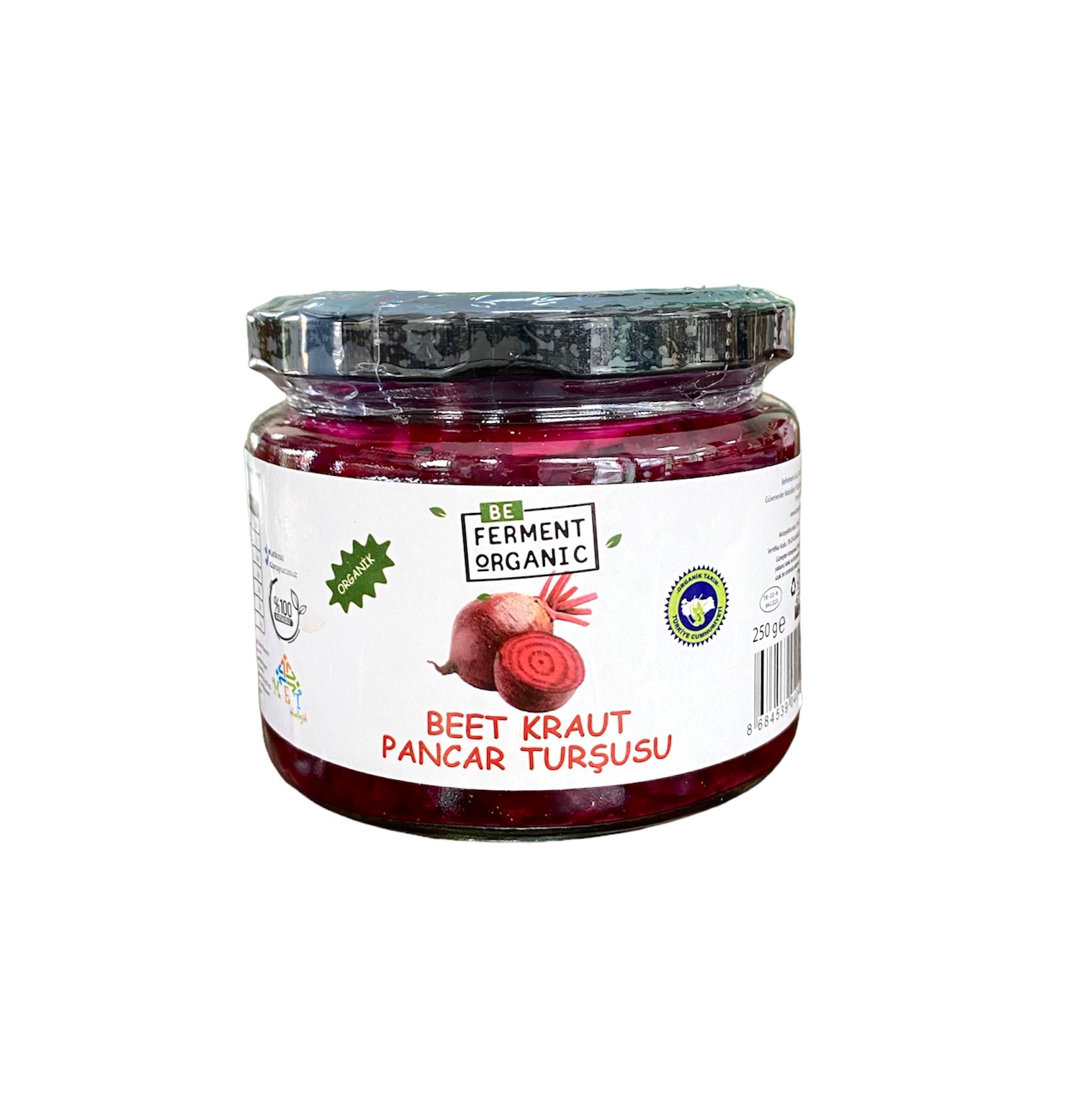 Beferment Organik Beetkraut, geleneksel lakto-fermente yöntemiyle hazırlanmış, katkı maddesi içermeyen doğal bir pancar turşusudur. Sadece organik pancar ve kaya tuzu kullanılarak fermente edilmiştir ve doğal fermantasyon süreciyle kendine özgü lezzetini kazanmıştır.