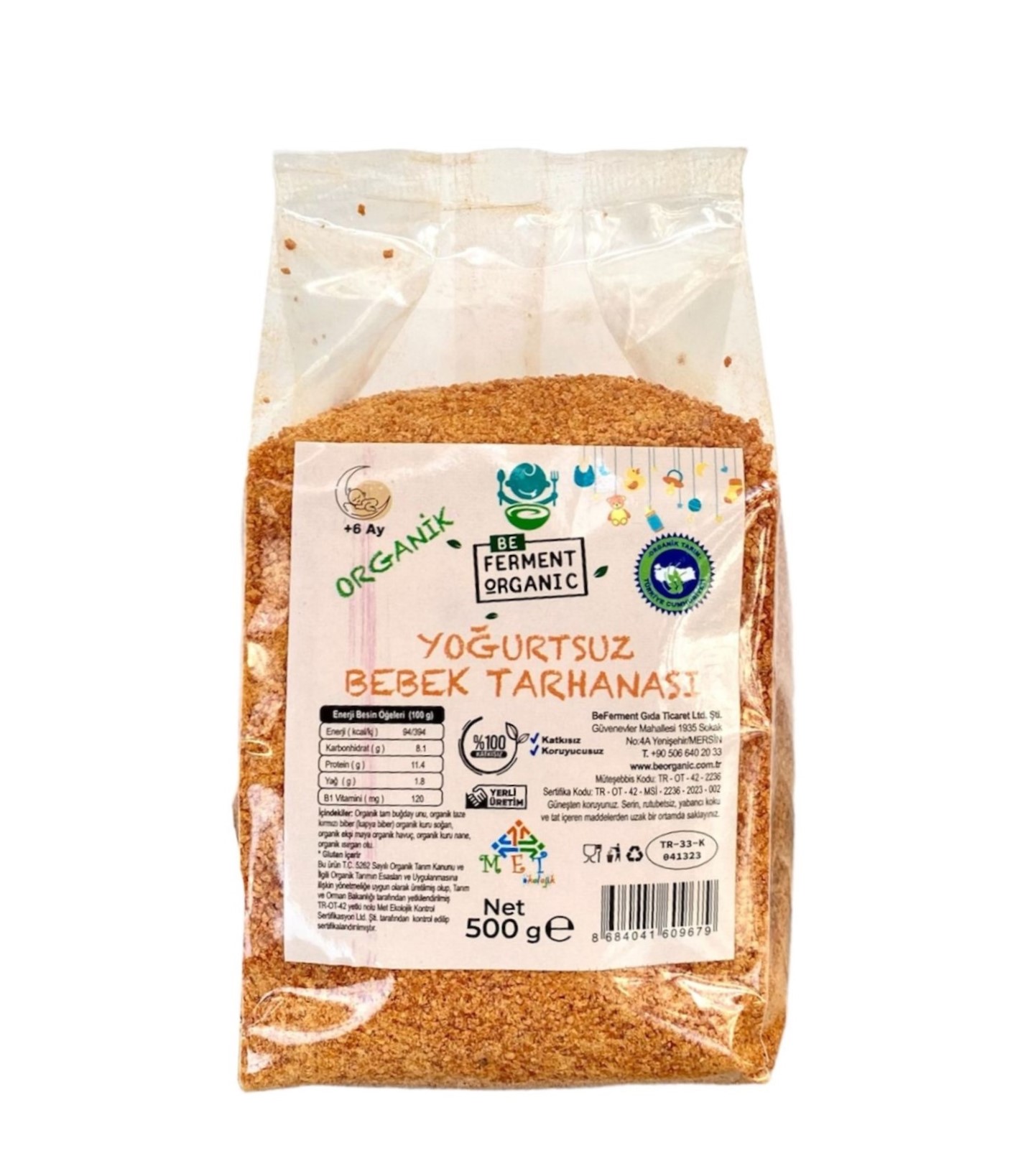 eferment Organic Yoğurtsuz Bebek Tarhanası, bebekler için özel olarak hazırlanmış, yoğurtsuz, katkısız ve doğal bir tarhana karışımıdır.