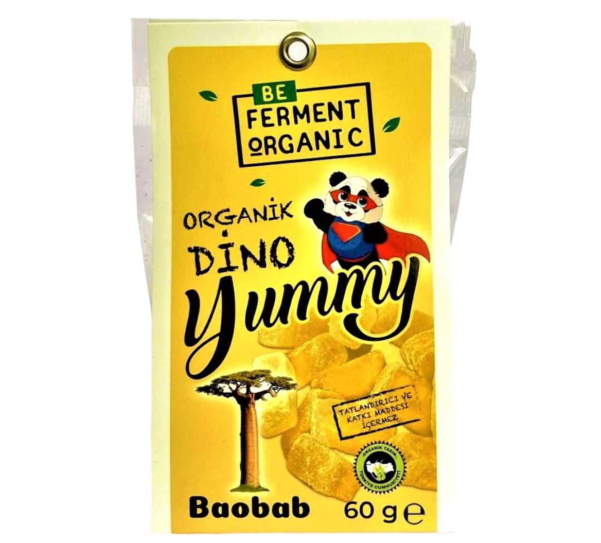 Beferment Organic Zencefil & Zerdeçal Yummy, hem yetişkinler hem de çocuklar için rafine şekersiz, organik zencefil ve zerdeçallı bir atıştırmalık şekerlemedir.