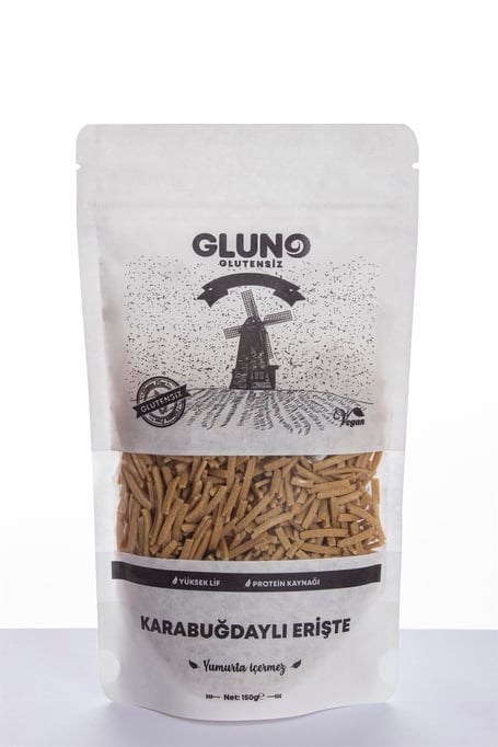 Gluno Glutensiz Karabuğdaylı Erişte, glutensiz ürünlerin işlendiği ortamda üretilmiştir.