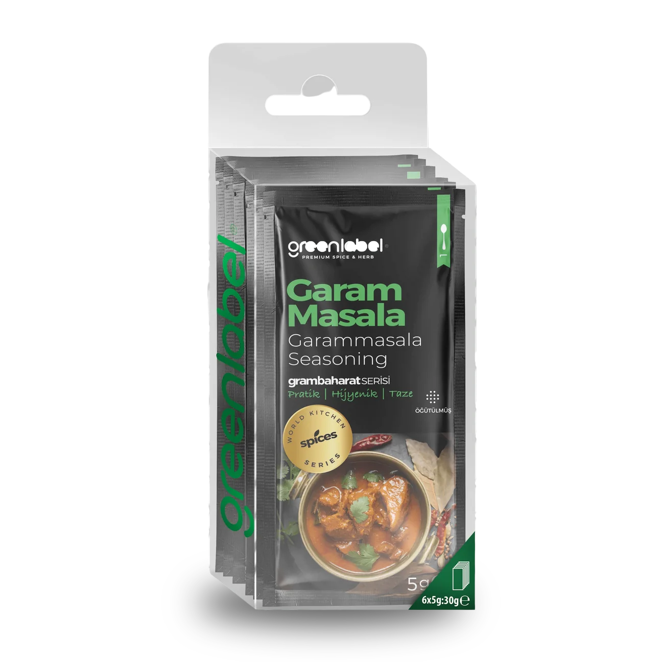 Greenlabel Garam Masala, özenle seçilmiş baharatların harmanlanmasıyla hazırlanan, yoğun aroma ve tat sunan özel bir baharat karışımıdır. Hint mutfağının vazgeçilmezlerinden biri olan Garam Masala, yemeklere derin bir tat ve baharatlı bir karakter kazandırır. 5 gramlık 6 adet paket içeren kutusuyla pratik bir kullanım sunar.