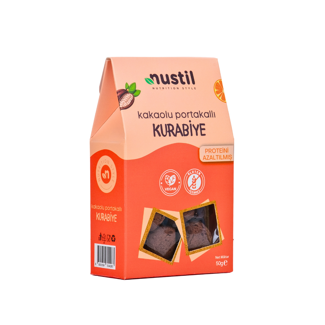 Nustil Glutensiz Düşük Protein Kakaolu Kurabiye, glutensiz ve vegan beslenenler için bir alternatiftir.